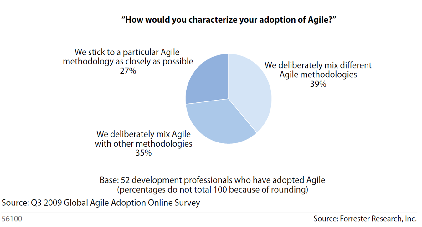Research shows, as seen in the following diagram, that agile has left its infancy where initiates prosaically follow an idiosyncratic process.  It has graduated to a level of mastery, where practioners are comfortable enough with the concepts to customize and improvise agile methods to meet their own individual needs.